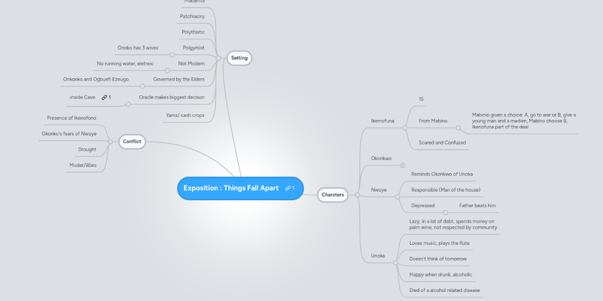 Things fall apart plot diagram. Things Fall Apart, Chinua Achebe Things Fall Apart is a novel written by Nigerian author Chinua Achebe. Published in 1958. Published in 1958. Its story chronicles the pre-colonial life in Nigeria and the arrival of the Europeans during the late nineteenth century. BACKGROUND: Have the students complete the reading of the novel, [Things Fall Apart], before beginning this lesson plan. 1. Place one yam, one labeled Post-It note, and one toothpick on each student's desk, prior to students entering the classroom. 2. Orally review the elements of plot, i.e. setting, major events, problems, conflicts and ... The narrative structure of Things Fall Apart follows a cyclical pattern that chronicles Okonkwo's youth in Umuofia, his seven-year exile in Mbanta, and his eventual return home. Each of the novel's three parts covers one of these periods of Okonkwo's life. The novel's three parts also map onto a gendered narrative structure that follows Okonkwo from fatherland to motherland back to ... 2. $7.99. Zip. This is a detailed, fairly difficult 81-question multiple choice test for the novel Things Fall Apart by Chinua Achebe. It also includes a 6-page study guide.The test questions focus on characters, events, Ibo words, and Ibo traditions. The questions are in chronological order and are divided up by.