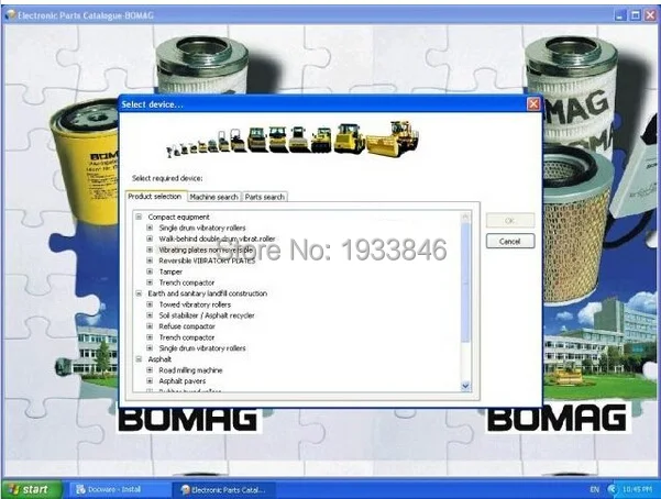 Electronic Parts Catalogue - Light Equipment. Electronic Parts Catalogue. Language Selection. Left bar. BOMAG Electronic Parts Catalogue 2021 is an electronic database catalog of spare parts for construction equipment ... Walk-behind double drum vibrat.roller.$150.00 · In stock