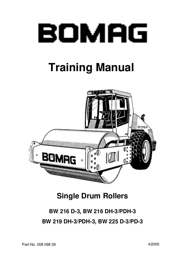 Bomag Single Drum Roller BW 219 D-4/PD-4 Service Manual PDF. A service manual provides information on repair, and maintenance, instructions, diagrams, special tools, etc, one word all information witch you need for comfort use and maintenance of the Bomag equipment. Also, the service manual includes a complete description of repair and ...