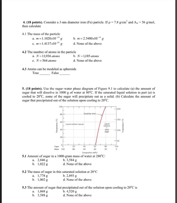 Science; Chemistry; Chemistry questions and answers; Consider the sugar-water phase diagram, Animated Figure 10.1 (a) How much sugar will dissolve in 1000 g of water at 70°C? e (b) If the saturated liquid solution in part (a) is cooled to 20°C, some of the sugar will precipitate out as a solid, because as seen in the figure, the composition of the saturated liquid solution drops to 64 wt% sugar. 9.1 Consider the sugar-water phase diagram of Figure 9.1. (a) How much sugar will dissolve in 1500 g of water at 90°C (194°F)? (b) If the saturated liquid solution in part (a) is cooled to 20°C (68°F), some of the sugar will precipitate out as a solid. This phase occurs when the community organization has already been established and the community members are already participating in the community-wide. a. Pre-entry phase c. Organizational building phase b. Entry phase d. Sustenance and strengthening phase 43. The following are guidelines that should be followed in the entry phase, except: a.