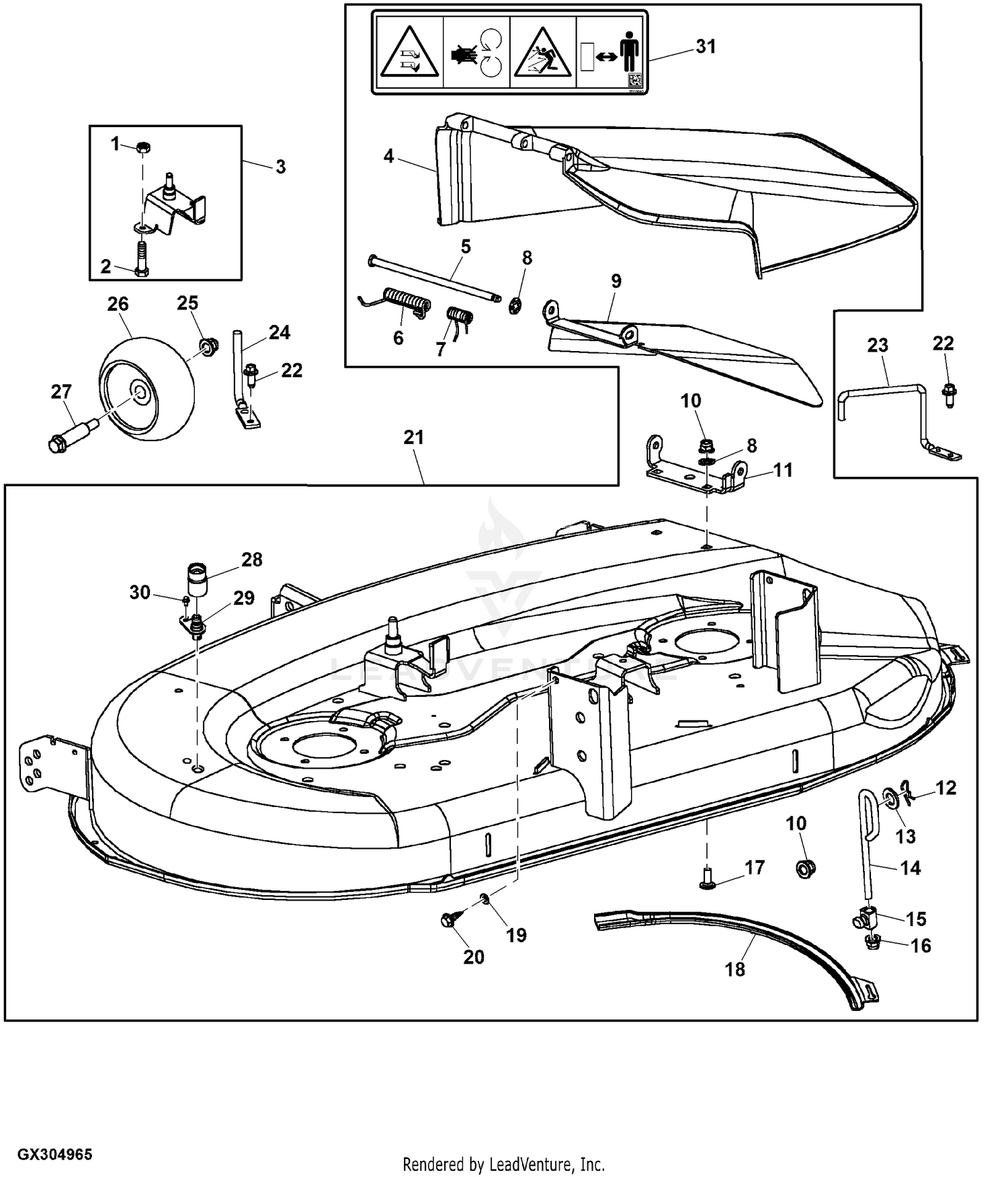 These are the parts on your John Deere L110 Lawn Tractor & Parts List that need to be regularly ... DECK MAINTENANCE KIT 42 3N1 Deck GY21086, $42.50