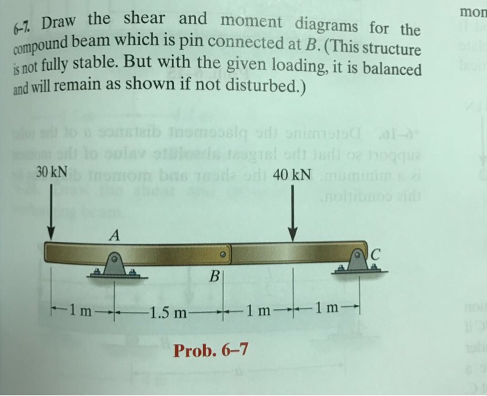 Draw The Shear And Moment Diagrams For The Compound Beam Which Is Pin Connected At B This Structure Is Not Fully Stable But With The Given Loading It Is Balanced And Will