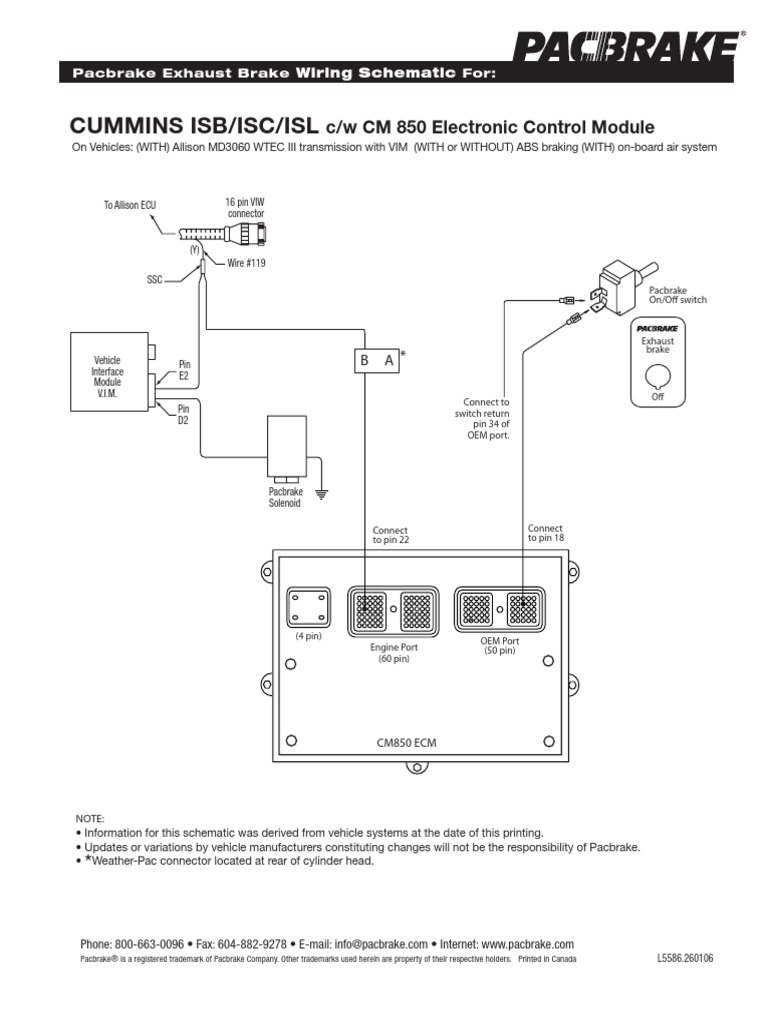 MD3060 wiring diagram. Looking for a wiring diagram that relates to the pac brake. Only ones I have found have a foot or throttle switch in the system. Mine does not. Has a VIM module. Brake hasn't worked since we got the coach. 1996 American eagle/8.3c Cummings. Repaired the ground wire from the solenoid. Brake works if you direct wire it.