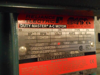 Baldor Reliance Jm3155 Ac Induction Motor 230 460 Vac 2 7 5 4 A 56 Frame 2 Hp 3450 Rpm Steiner Electric Company