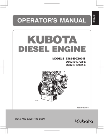 Download now. Jump to Page. You are on page 1. of 38. Search inside document. OPERATOR'S MANUAL KUBOTA DIESEL ENGINE MODELS 2Z482-E-Z602-E D662-E-D722-E D782-E-D902-E READ AND SAVE THIS BOOK Kiyhotaf: JAUNAM 2'HOTARSIO ATO&UR aMIOMS J32310 | 3-S083°3-S8AS 2JF0GOM 3-SS1G- 3-900 3-s0e0 -3-SevdfCONTENTS & SAFE OPERATION SERVICING OF THE ENGINE...