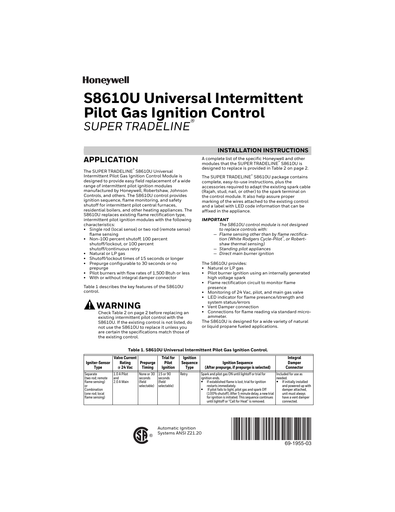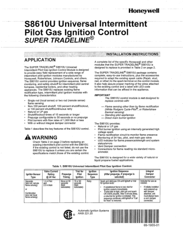 View and Download Honeywell S8610U installation instructions manual online. Pilot Gas Ignition Module. S8610U control unit pdf manual download.