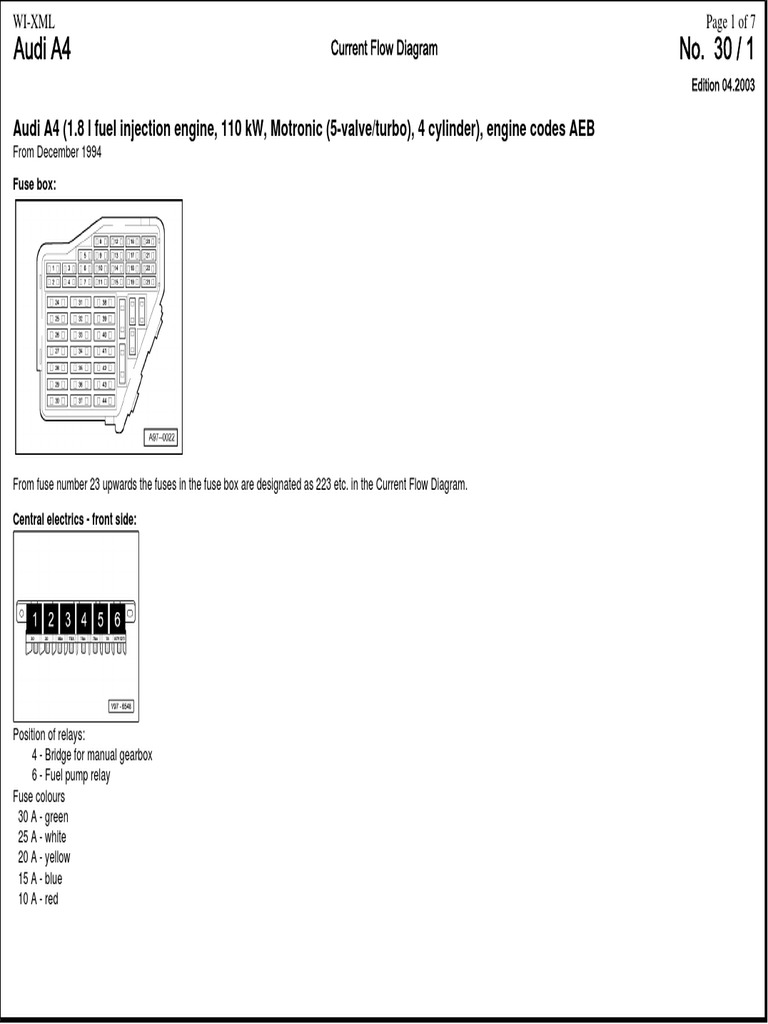Wiring diagram ws= white sw = black ro = red br = brown gn = green bl = blue gr = grey li = lilac ge = yellow Ground connections or = orange rs = pink Audi A4 No. 2/3 T4k - 4-Pin Connector, black, near front bumper 3 - Ground strap, engine to body 12 - Ground connection, in engine compartment, left 44 - Ground connection (lower left A-pillar) 1994-2001 Audi A4 Avant, A4 (B5) Workshop Repair & Service Manual. Audi A4 B5 1994-2001 Factory Service Repair Manual Download Pdf. A4 B5 Repair Service Manual 1994-2001. 1994 Audi A4 S4 RS4 8D,8D2,8D5 SERVICE AND REPAIR MANUAL. 1994 Audi A4 (B5-8D) Service and repair Manual. Description: Parts® | Audi Oil Pan, A6, Lower, From 4F-6-190001 – 3.2L (V6 for Audi A4 Engine Parts Diagram, image size 600 X 681 px, and to view image details please click the image.. Honestly, we have been remarked that audi a4 engine parts diagram is being one of the most popular subject right now. So we attempted to get some terrific audi a4 engine parts diagram image for you. Information suitable for Audi A4 (B7) 2004, 2005, 2006, 2007, 2008 model year.. Fuse box in engine compartment. fuse box location.