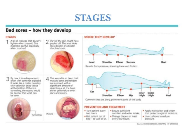 ... prominences") and areas that are under the most pressure are at greatest risk for developing pressure sores. diagram of woman sitting in wheelchair. Feb 01, 2018 · Top diagram showing pressure ulcers Stage I: skin intact. Stage II: partial skin loss. Stage III: full-thickness skin loss, subcutaneous tissue exposed. Stage IV: muscle, tendon, bone or organs exposed. Bottom diagram showing unstageable pressure ulcer with tissue damage hidden from observer by eschar over entire wound. Deep tissue injury ... Pressure ulcer risk assessment is a standardized and ongoing process with the goal of identifying patients at risk for the development of a pressure ulcer so that plans for targeted preventive care to address the identified risk can be implemented. This process is multifaceted and includes many components, one of which is a validated risk ... Secondary hypertension is hypertension due to an identifiable cause, and may result in certain specific additional signs and symptoms. For example, as well as causing high blood pressure, Cushing's syndrome frequently causes truncal obesity, glucose intolerance, moon face, a hump of fat behind the neck and shoulders (referred to as a buffalo hump), and purple abdominal stretch marks.