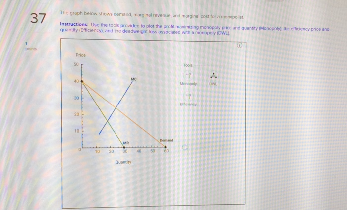 38 the diagram below shows the demand, marginal revenue, and marginal cost of a monopolist.