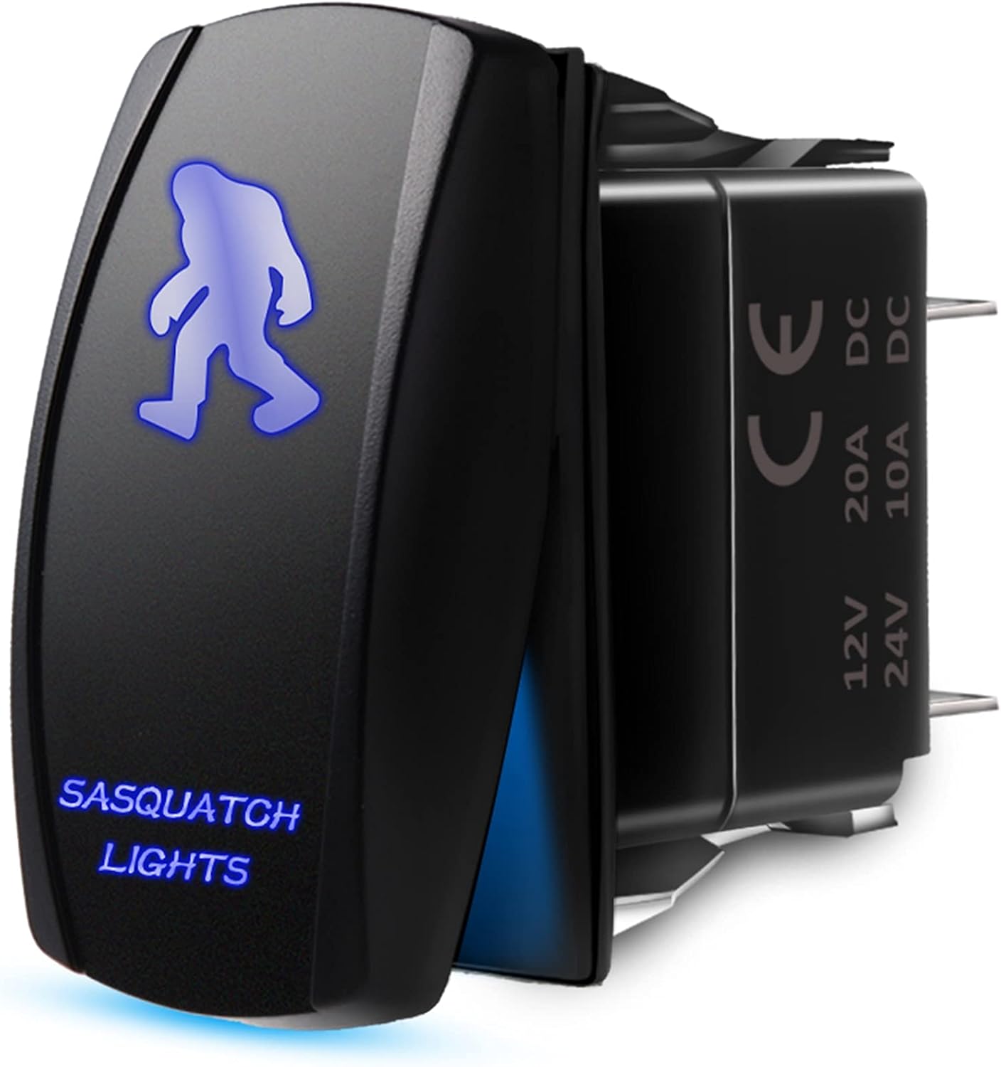 Mictuning acssb laser on-off rocker switch with jumper wire, 5 pin, 20 amp, 12v, led lights, sasquatch light, blue