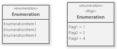 24 Jun 2020 · 3 answersA solution is to use uml constraints like so: ... is better drawn with <<enumeration>> (like in the Figure 7.1 - Class Diagram Example page ...