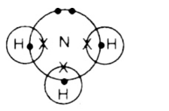 This is the structure of ammonia or \[N{{H}_{3}}\].-In ammonium ion, the lone pair on nitrogen atoms of ammonia has the ability to fully share its pair with hydrogen ions, thus forming a coordination bond with nitrogen. Nitrogen will attain a positive charge on it. Thus it becomes an ammonium ion. The electron dot diagram is shown below.
