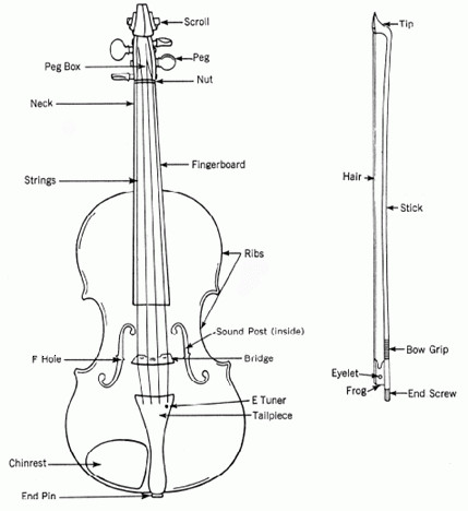 Print out a diagram of a violin without the names of the different parts. Provide students with a word bank and have them label the different parts. Violin Trivia