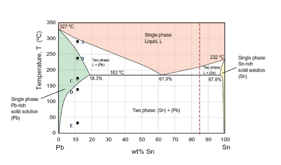 Therefore the experimental observation of metastable melting temperatures provides an accurate method of determining the metastable phase diagrams which have so ... The composition of the eutectic phase pf Sn-Pb alloy can be turned into liquid directly from the solid phase, without going through the solid+liquid phase. Sn-Pb alloys are generally used in electrical and electronic components in today’s technology. Conclusion. The assessment of Sn-Pb binary phase diagram is very easy like above. Earth Sciences questions and answers. Use the Pb-Sn Phase Diagram to answer Questions Please show work, thanks! 1. The temperature of the eutectic reaction is closest.