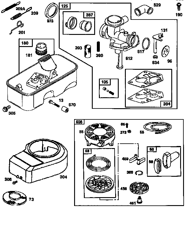Briggs and stratton recoil starter assembly diagram. Parts Lookup Tool. This interactive page will allow you to find the exact replacement part you need, using official parts diagrams from the manufacturer. Even better, once you find your part, you can easily add it to your cart and check out – getting you up and running even faster. To begin, please click the brand of your engine or equipment. Briggs and Stratton Illustrated Parts Diagrams available online from LawnMowerPros and ready to assist you in finding your repair parts. We are an Authorized Briggs and Stratton Small Engine Dealer carrying a large selection of Illustrated Parts Lists. Photo 6: Replace the recoil starter assembly. Remove the engine cover retaining screws and lift the cover off the engine. Next, remove the recoil assembly hex-head screws. Then lift off the old unit and drop in the new one. Reverse the procedure to reinstall. Briggs & Stratton Model 6H 1950-1956 2.00" Bore 2.00" Stroke L-Head This engine is a horizontal (vertical crankshaft) version of the model 6 or 6S and was the designed specifiaclly for the new (at the time) Rotary lawnmowers. This engine has a float feed carburator, pnumatic governer, as well as a special oil sump and ejection type oil pump.