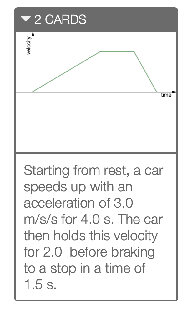 Velocity-Time Graphs: Meaning of Shape Net Force (and Acceleration) Ranking Tasks. Newton's Second Law. Normal Force Card Sort. Such means include the use of words, the use of diagrams, the use of numbers, the use of equations, and the use of graphs. Lesson 4 focuses on the use of velocity versus time graphs to describe motion.