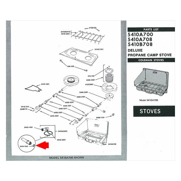 Coleman 5410A700 Parts | Campings Part Categories for Coleman 5410A700: Burners and Venturi | Covers | Grates, Heat Plates, and Angles | Hardware | Hoses, Valves, and Regulators | Knobs | Other Parts | Wheels and Casters.