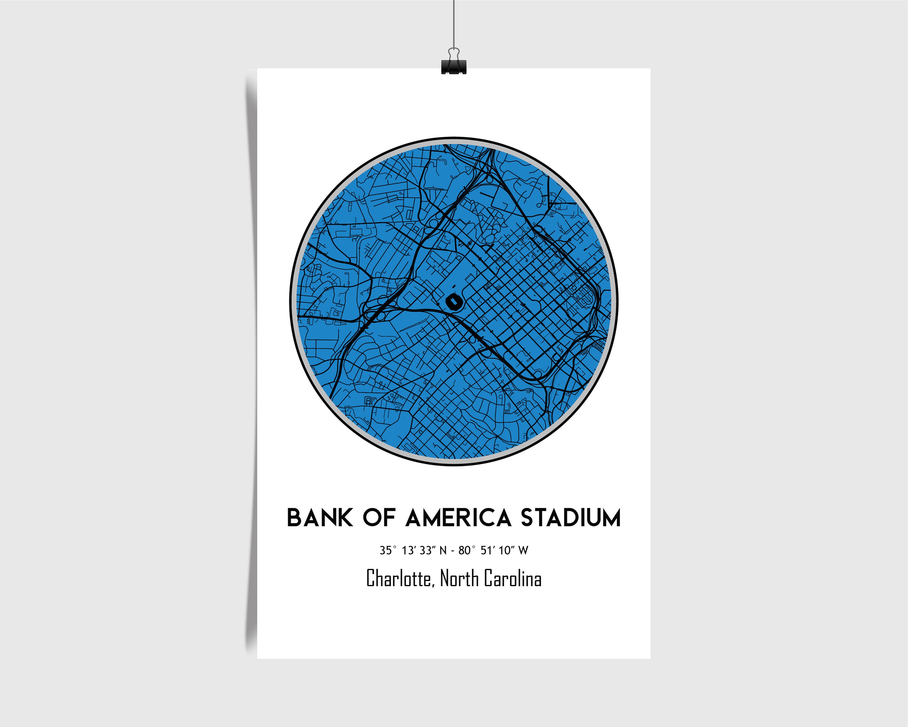 Carolina Panthers, Bank of America Map, North Carolina Print, Stadium Map Poster, Poster Print, Groomsmen Gift Football Poster Panthers Gift