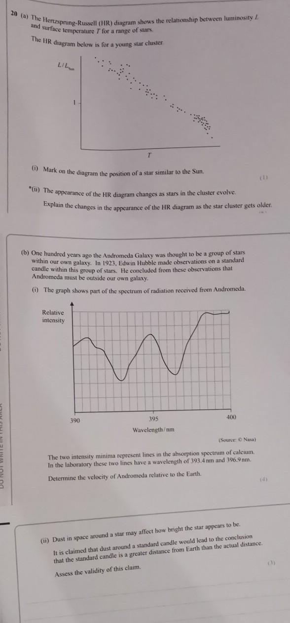 What is the relationship between a star's temperature and ... What is the relationship between a star's temperature and its brightness? A star's brightness, or luminosity, depends on the star's surface temperature and size. If two stars have the same surface temperature, the larger star will be more luminous. The Hertzsprung-Russell (H-R) diagram below is a scatter plot that shows the relative ... A hertzsprung-russell (h-r) diagram shows the relationship ... A hertzsprung-russell diagram is used to show the relationship between; Which diagram best illustrates the relationship between humans and ecosystems; Which table shows a proportional relationship between x and y? The table shows the relationship between time spent running and distance traveled. The following diagram shows the path of a planet ... educationstandards.nsw.edu.au › wps › wcmNSW Education Standards Authority The Hertzsprung–Russell diagram shows characteristics of stars in a globular cluster 100 light years in diameter and 27 000 light years from Earth. 10 Visual magnitude 12 14 16 18 20 22 −0.2 0.0 0.2 0.4 0.6 0.8 1.0 1.2 1.4 Colour index (B–V) – 4 – The stars plotted on this Hertzsprung–Russell diagram have approximately the same